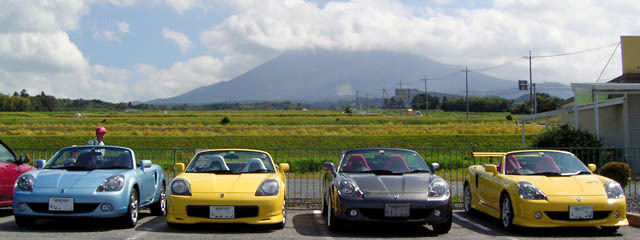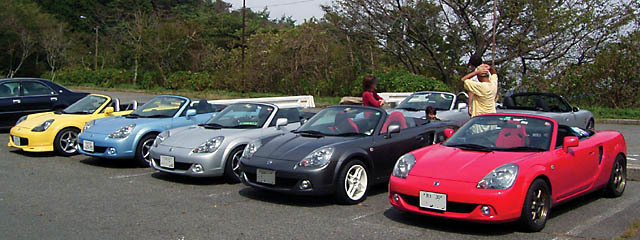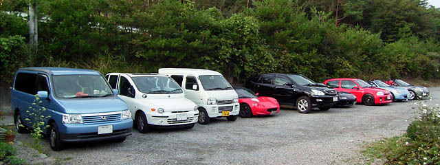 奈良のkumaさんが遠方からの参加です。天気予報は怪しかったですが、過ごしやすい天気になりました。今回はカラフルなMR-Sですね~。お名前を存じ上げませんが、ロードスターターボも来ていました。