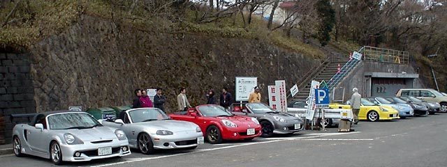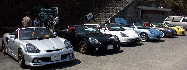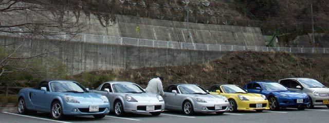 MR-S7台と、tamarin21jpさんがプレオで、8台の参加でした。mikiさんのC-ONEエアロでキメタMR-Sはシャープな感じでなかなかよいです。(^^b